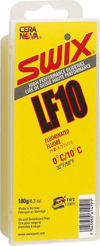 Swix LF10 is for very wet conditions. Also good for base preparation and to protect the bases when traveling. The snow is often dirty at the temperatures calling for LF10, therefore an overlayer of Cera F is recommended.
