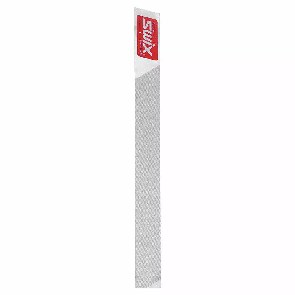 Order to Use Files: Start with Swix File T107X Bastard First Cut 8″/20cm 13tpcm. Use this file for initial side bevel and setting side angle. Secondly, use Swix File T106X 8 inch Second Cut 8″/20cm 16tpcm. Use this file for side beveling as well as base beveling set up before diamond work. Third use Swix File T104X 6 inch Smooth Cut 6″/15cm 20tpcm. This chrome finishing file is shorter with increased tpcm to smooth out striations left by second cut file. *TPCM: Teeth Per Centimeter